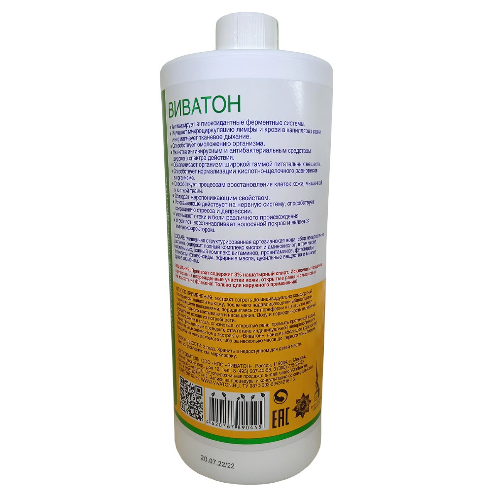 Вода, сбор лекарственных растений (207 компонентов), содержащий широкий комплекс жиро- и водорастворимых витаминов, микро- и макроэлементов, флавоноидов, гликозидов, аминокислот, эфирных масел, дубильных веществ и других ингредиентов природного происхождения; нашатырный спирт низкой концентрации.Экстракт «ВИВАТОН» получен из сбора лекарственных растений. Содержит 207 компонентов